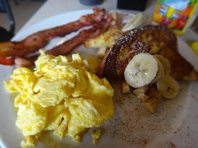This time, though, I settled on scrambled eggs, bacon and banana sweet bread french toast. Substituted the pancakes that would've came with my meal with french toast.....and bananas! It was a hearty breakfast and I was full after, but it was nothing spectacular. I think there are better breakfast/brunch places around.